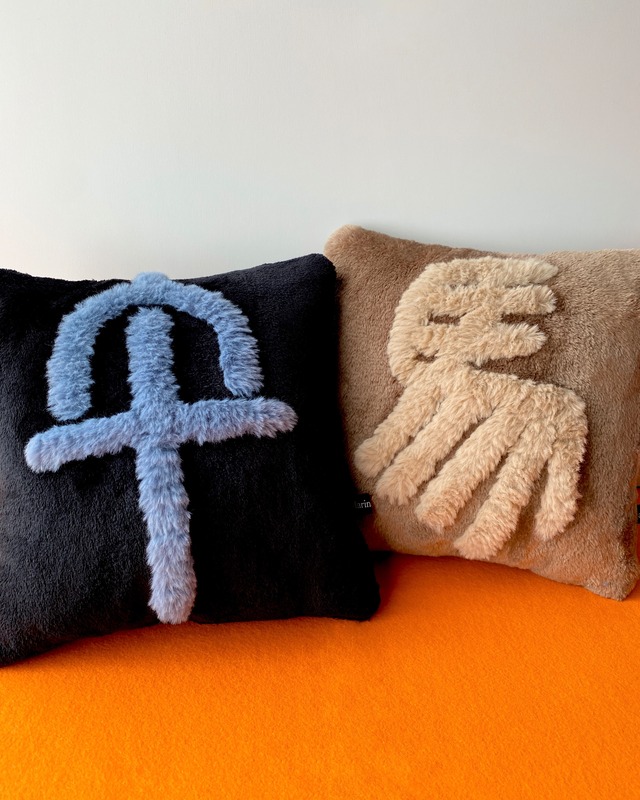<毎年の干支をモチーフにした限定コレクション> こちらは通常の『HANKO cushion』よりも小ぶりなサイズに、ひと針ずつ手刺繍を加えた特別仕様 立体作品『はんこクッション』シリーズ: 書道作品などにも使われる“篆刻印”からヒントを得て制作した立体作品 硬い石ではなく、モケモケのクッションになりました! 文字はホンモノの石印にも使われる「篆書(てんしょ)」という書体でデザインされています。 [午 / black] 素材 : Polyester 100% サイズ: 約28×28 cm [馬 / brown] 素材 : Polyester 100% サイズ: 約28×28 cm ※自然光で撮影しています。光の加減やモニターの種類、明るさによって多少色味が異なる場合がございます。あらかじめご了承ください。 ※使用している生地の素材感や弾力・大きさなど全て個体差があり、一点ものが特徴になります。 ※デリケートな素材を使用しております為、アート作品としてお楽しみください。刺繍部分もすべて手作業による製作を行っています。(カバーの着脱は不可) —————————————————————— 【アーティストプロフィール】 森 真里奈 (もり まりな / Marina Mori) 日本の女性書道家 / アーティスト / Japanese calligrapher 様々な手法を取り入れた個人作品制作のほか、KIDILLやJUVENILE HALL ROLLCALLなどアパレルブランドへのグラフィック提供、他ジャンルのアーティストとのコラボレーションなど精力的に活動の幅を広げている。 Instagram / X:@morinoshin_ http://marinamori.jp/