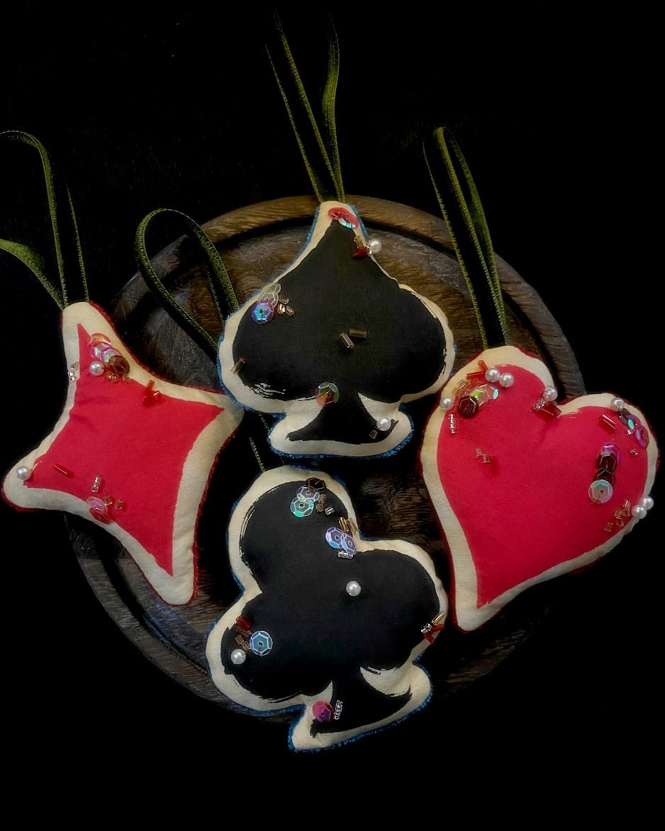 ※ 一点ずつ手作業で製作しているため、大きさや柄の出方、ビーズ装飾の位置など多少の個体差が生じます。あらかじめご了承ください。