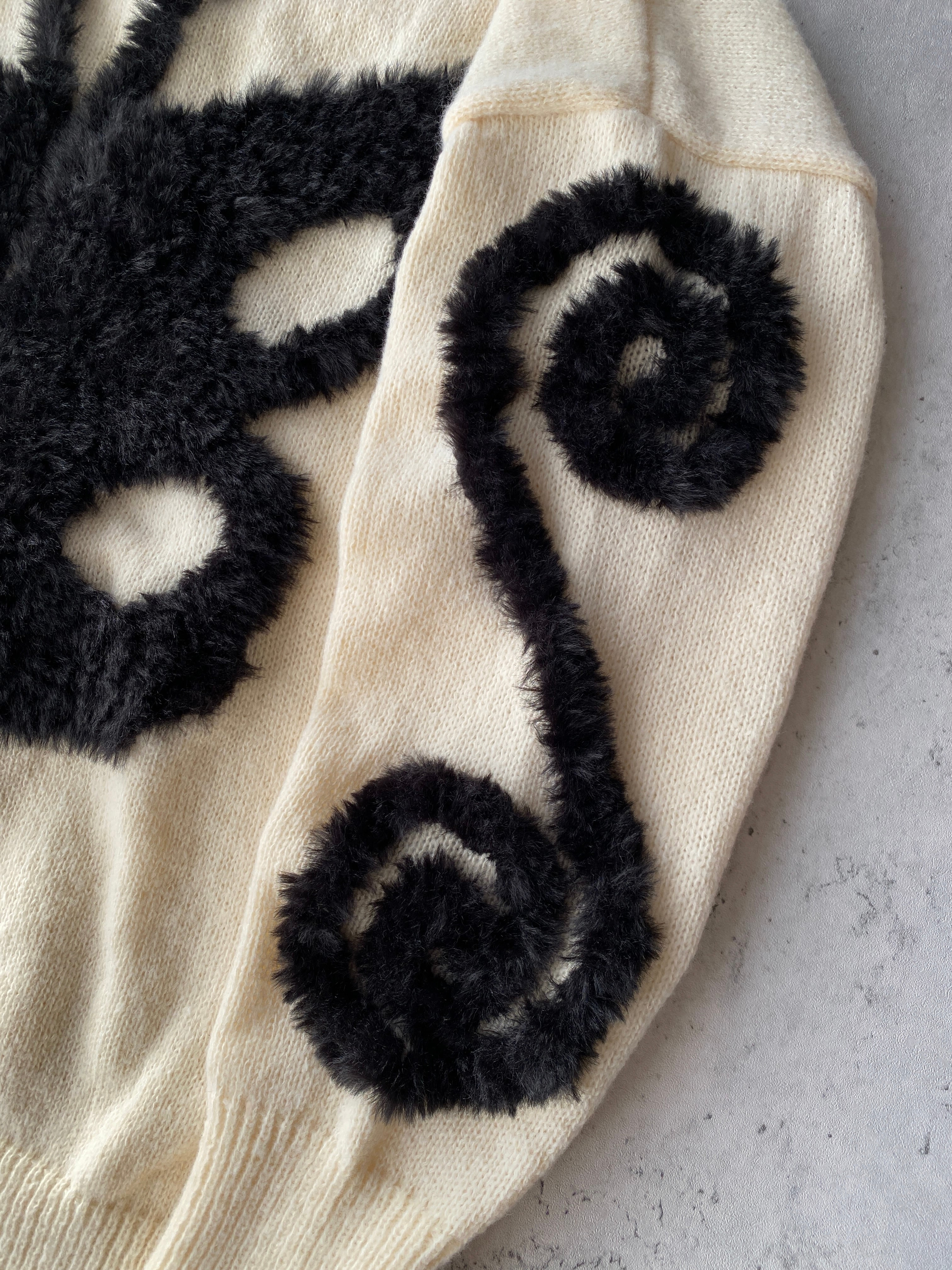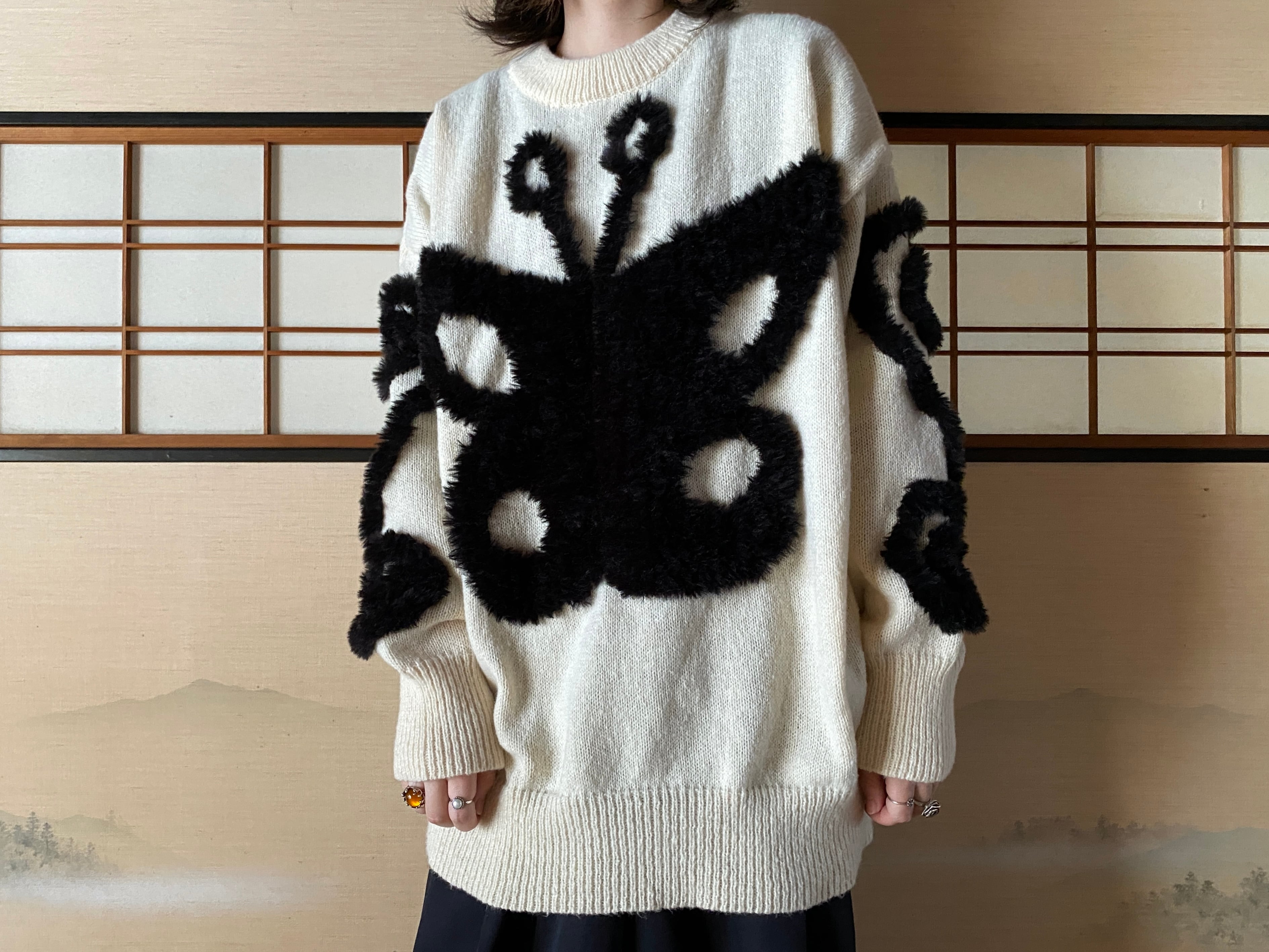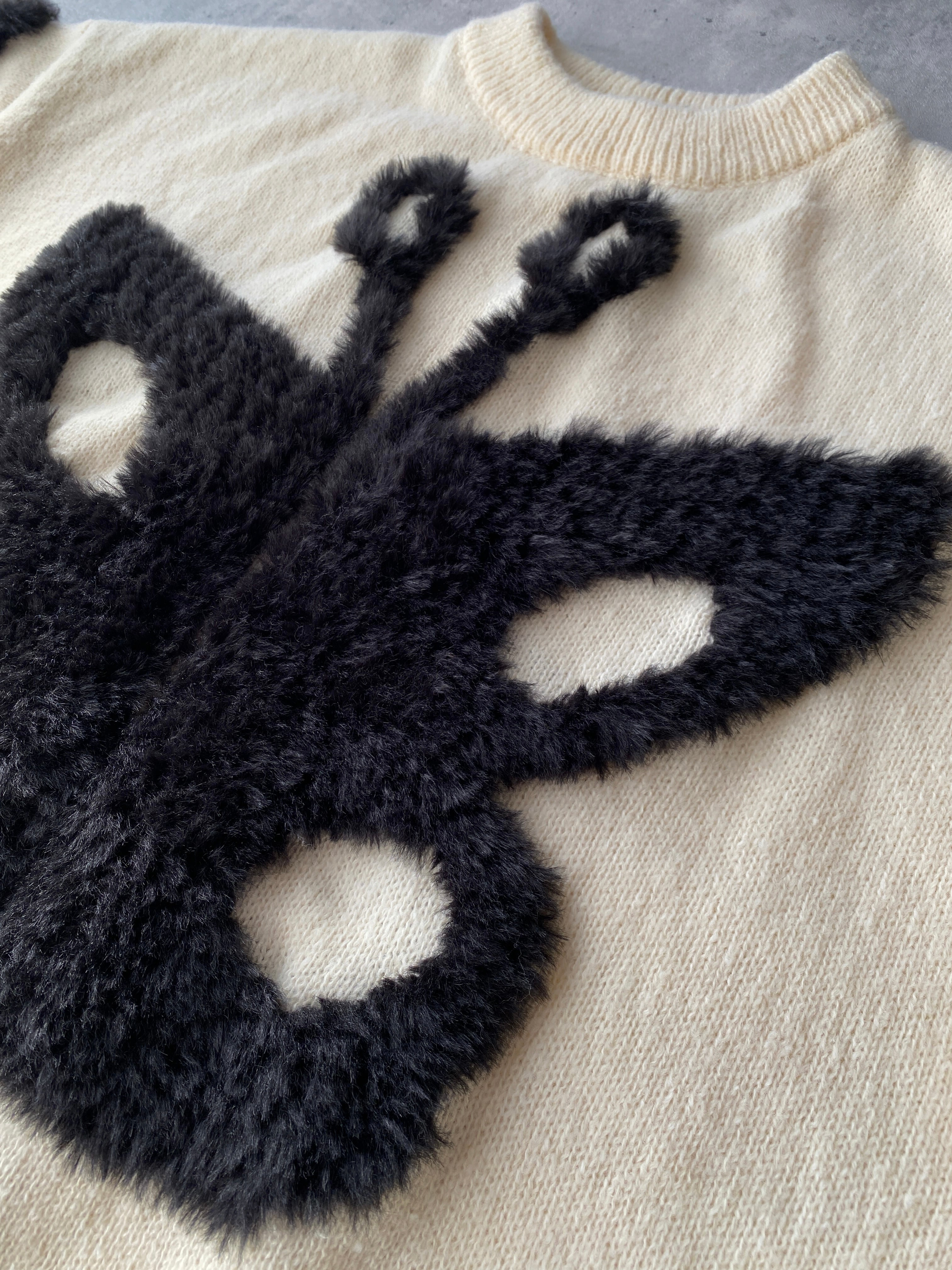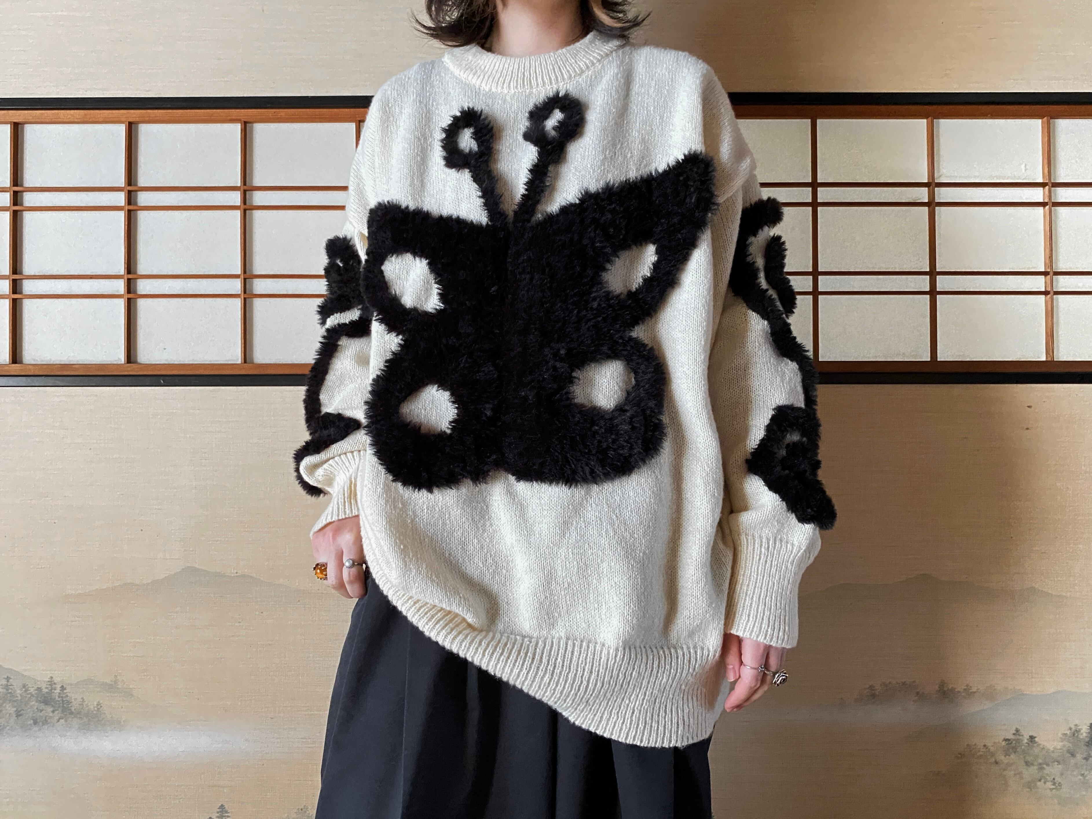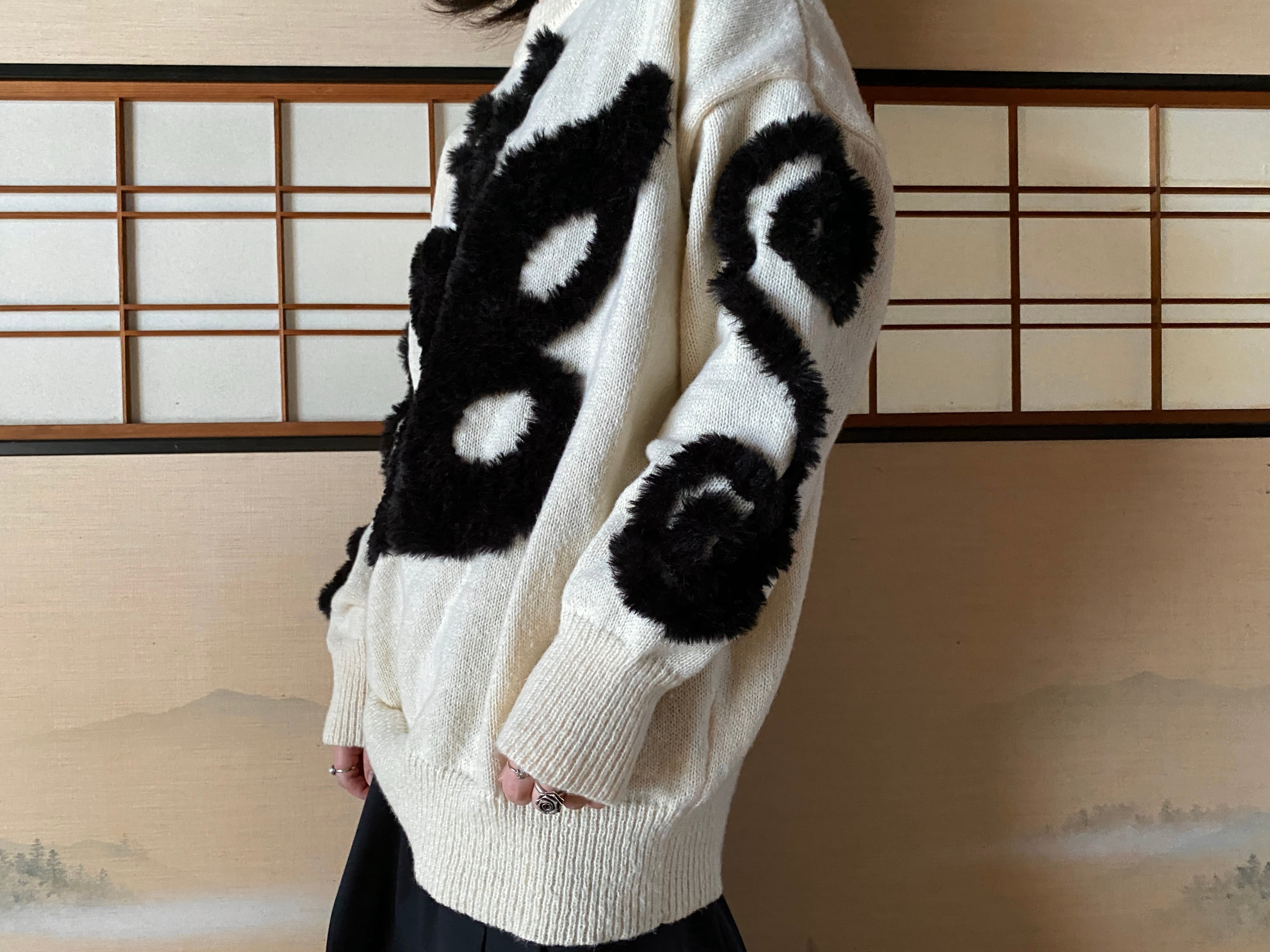 アクリルニット素材でエアリー感のあるハイゲージニットに、立体的な手刺繍を施したアイテムです。