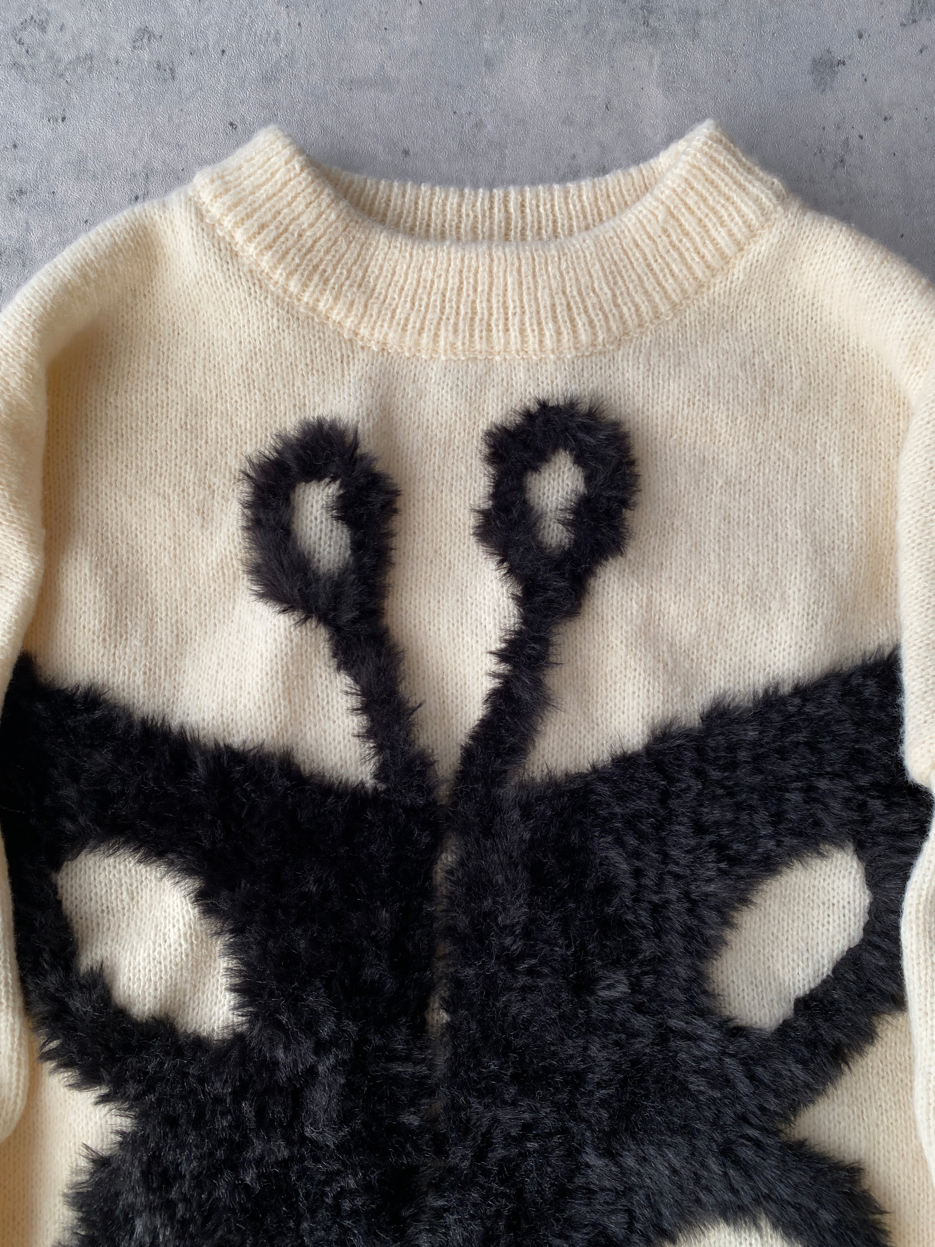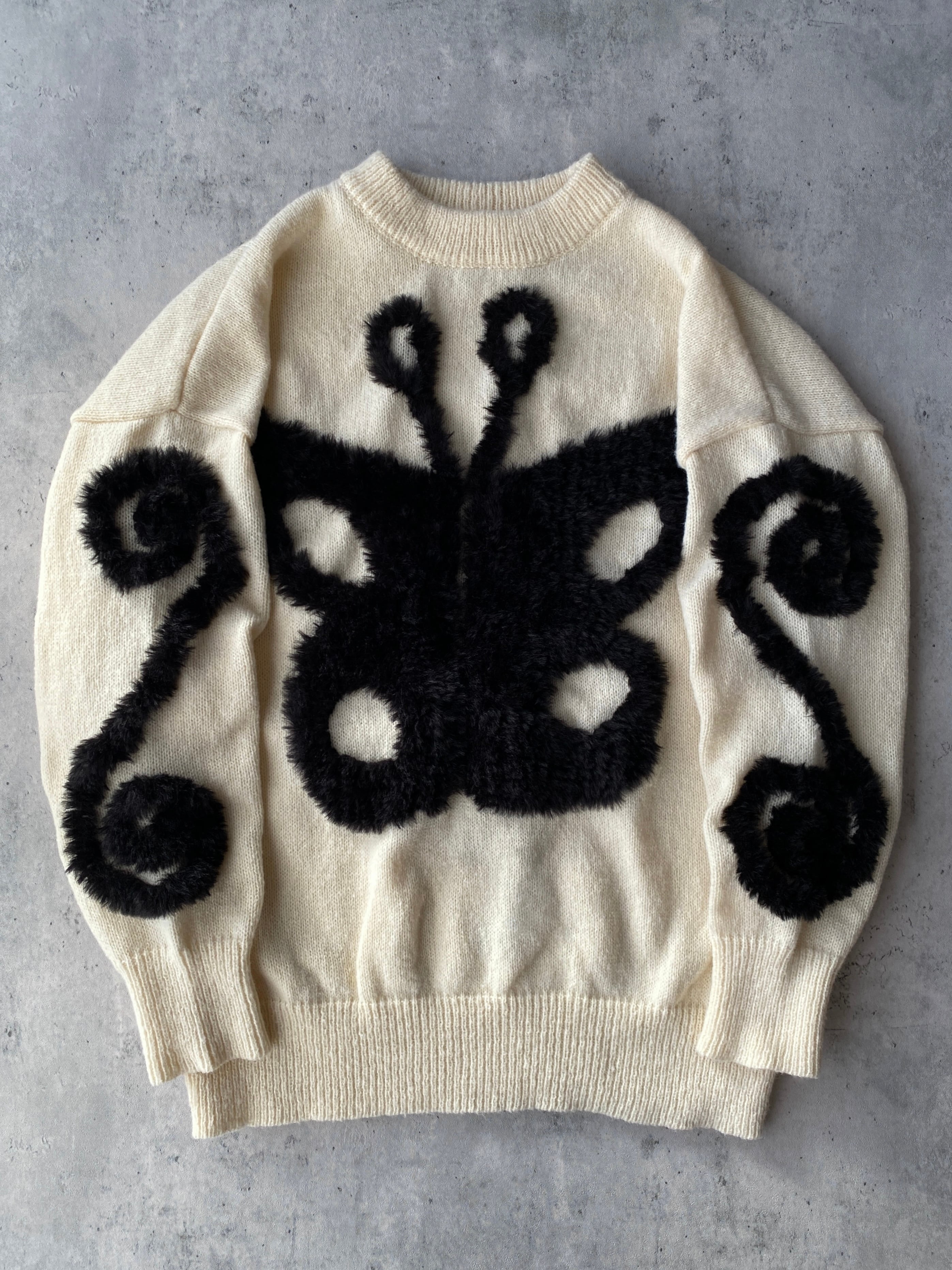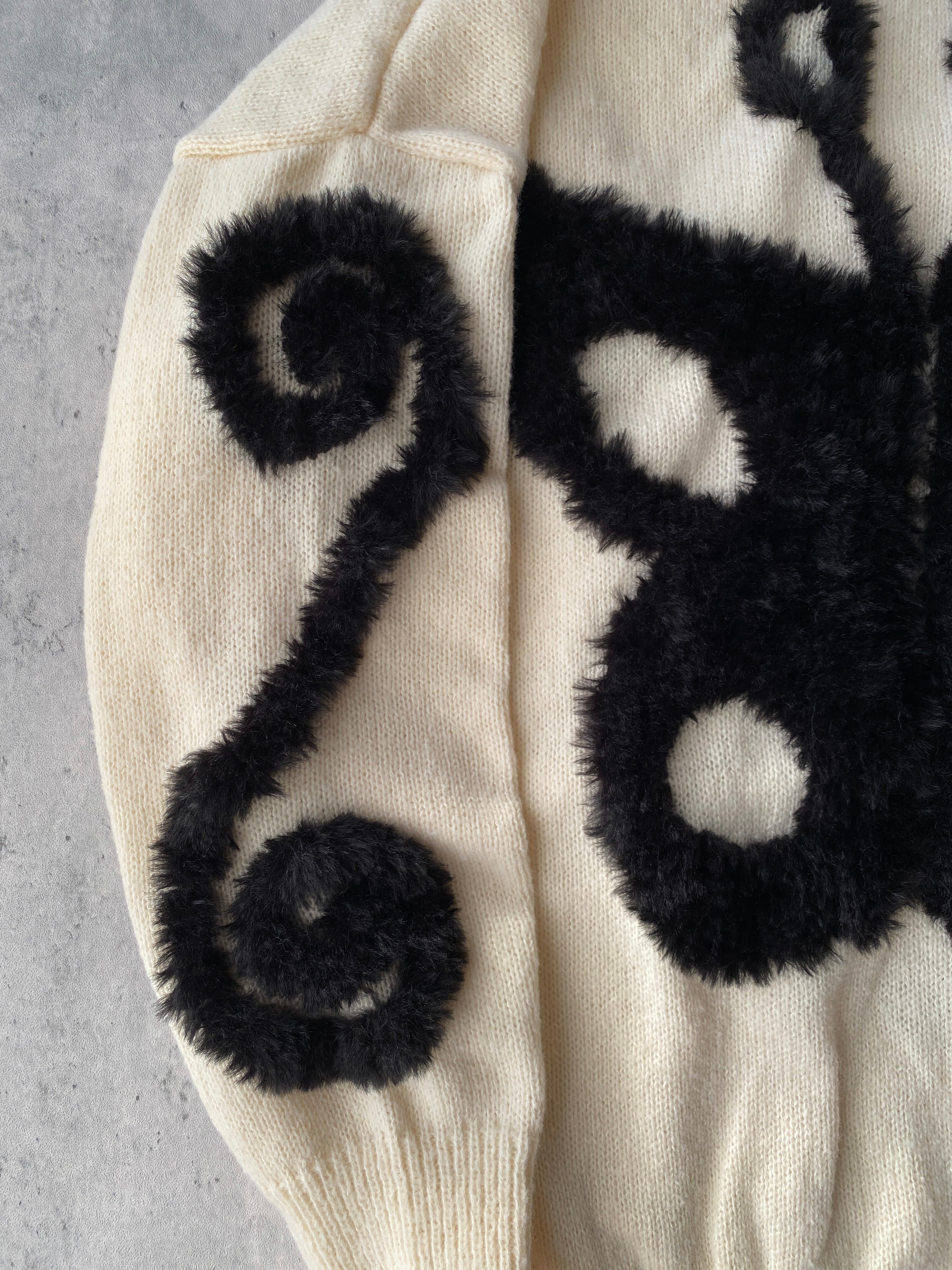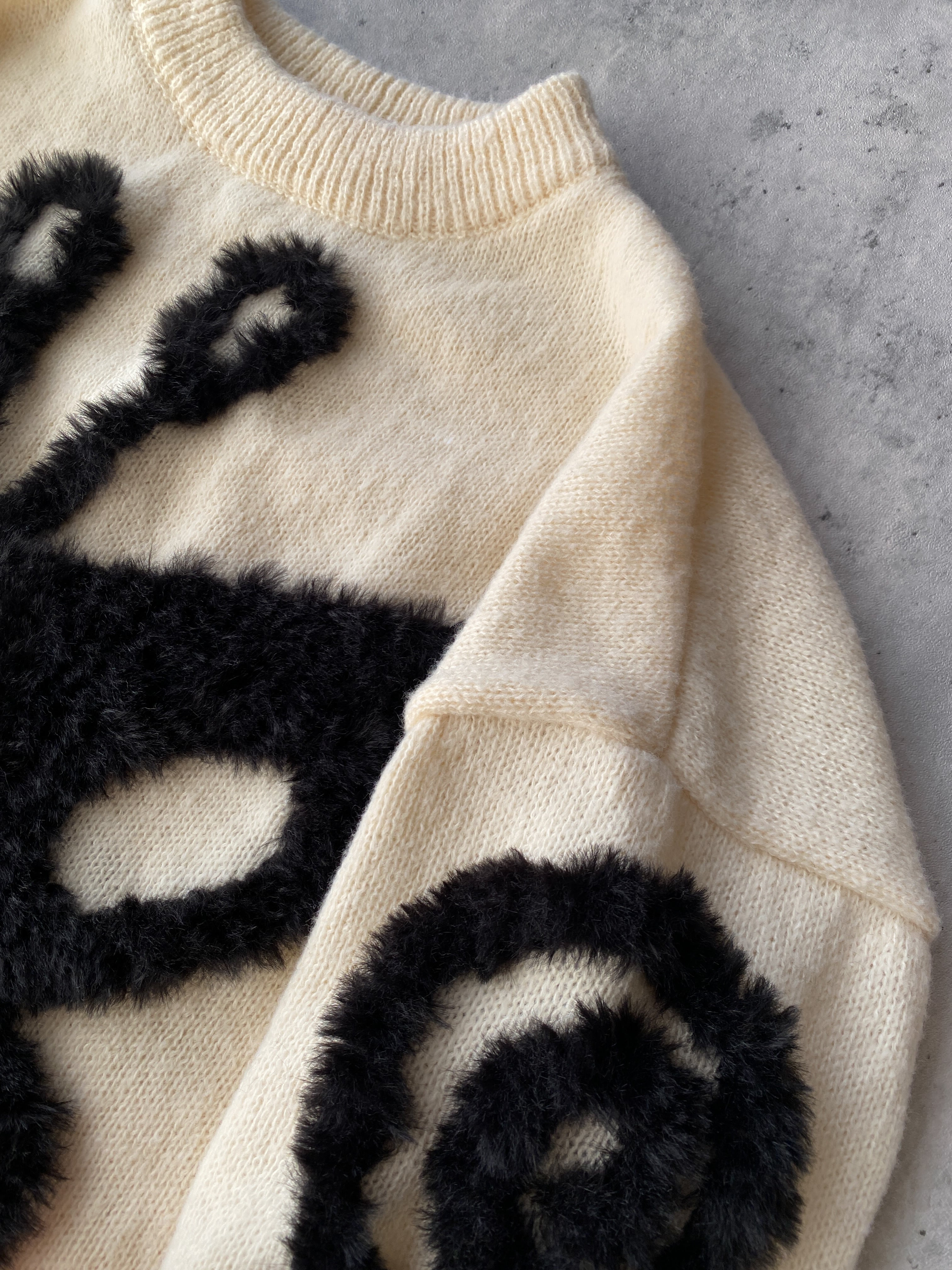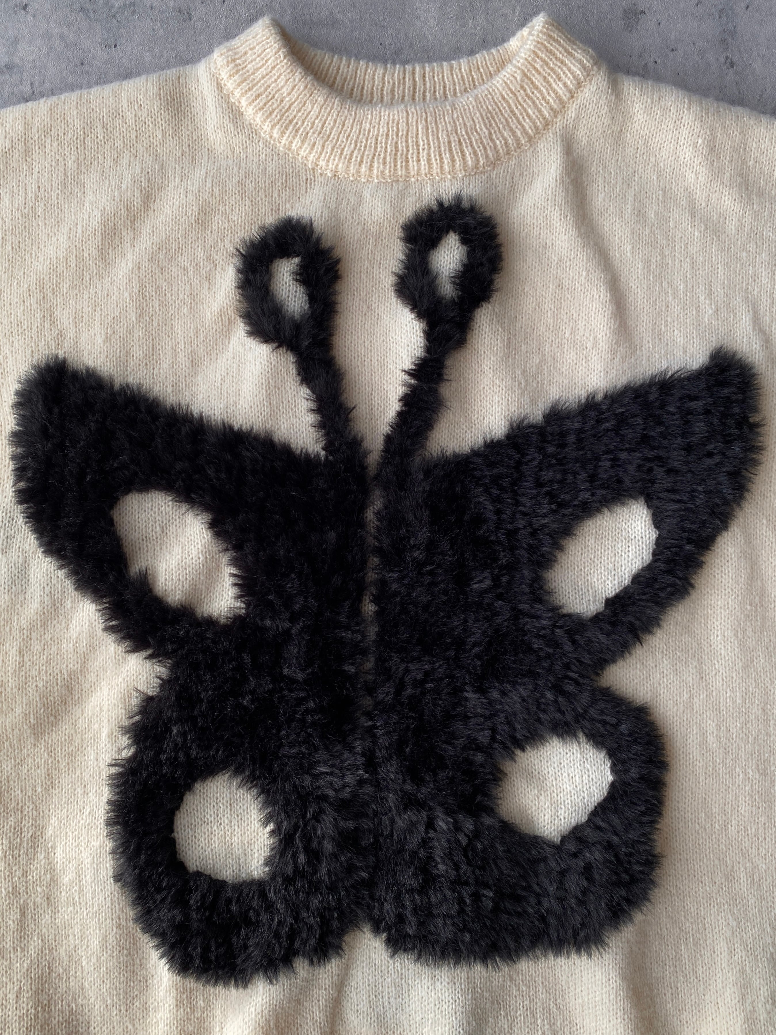 アクリルニット素材でエアリー感のあるハイゲージニットに、立体的な手刺繍を施したアイテムです。